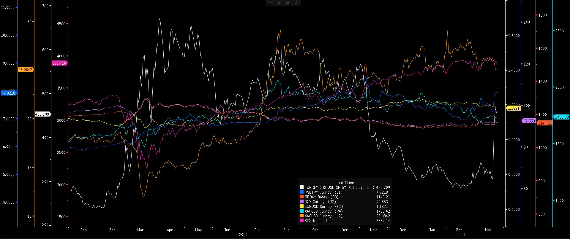 Enflasyon konusunda, Fed ile piyasanın algısında taban tabana zıt görüşlere bulunurken, Fed güvercin duruşunu sürdürmektedir. Fed Başkanı Powell, enflasyonun uzun vadeli tahvillerde risk oluşturmayacağını belirtirken, Fed’in diğer üyeleri faiz artışının ekonomik takvime bağlı olduğunu belirtmektedir. Bu noktada piyasa algısı değiştirmeyerek sadece algısının şiddetinin azaltmıştır. Bunun yansıması olarak ABD tahvil faizlerinden sınırlı geri çekilmeler olsa bile halen katılığın sürmesi olmaktadır. Özellikle ABD 10 yıllık tahvil faizi %1,60 altında kalıcı olmamaktadır. Normalleşme için ilk etap %1,60 - %1,50 bölgesini izlerken, yukarı yönde %1,74 - %2,00 bölgesine doğru hareketi daha olası görmekteyiz. Piyasanın enflasyonda şahin duruşu ve ABD tahvil faizlerinden gerilemenin sınırlı kalması risk algısını olumsuz etkileyerek, ABD endekslerinde baskı oluşturmaktadır. S&P500 endeksinin Biden teşvik paketi ve olası altyapı paketine rağmen 3900 üzerinde kalıcı olamaması soru işareti olarak not edilmektedir. Bunlara ilave olarak güçlü $ teması etkinliği ile Euro baskılanması sürmektedir.