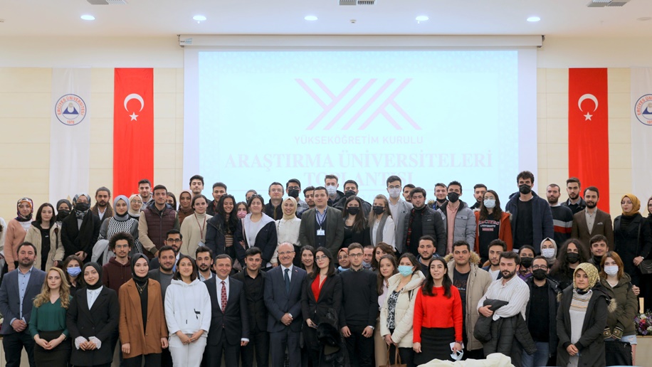 Toplantıda konuşan TÜBİTAK Başkanı Prof. Dr. Hasan Mandal ise üniversitelerde araştırma yönetmenin önemine değinerek, Dünya Ekonomik Forumunun açıkladığı 2021 yılındaki raporla ilgili bilgi verdi. Türkiye İklim Şurası’nda alınan kararlarla ilgili konuşan Mandal, Türkiye’nin iklim değişikliği, çevre ve biyo çeşitlilik, temiz ve döngüsel ekonomi, erişilebilir enerji arzı, yeşil ve sürdürülebilir tarım, sürdürülebilir ulaşım konularında önemli çalışmalar yürüteceğine dikkati çekti. Araştırma üniversitelerine ayrılmış özel kontenjanların olduğuna işaret eden Mandal, TÜBİTAK’ın insan kaynağının gelişmesi bakımından desteklerinin sürdüğünü kaydetti. YÖK Yürütme Kurulu Üyesi Prof. Dr. Naci Gündoğan ise 17 Mart 2022’de Cumhurbaşkanlığı Strateji ve Bütçe Başkanlığı ile Yükseköğretim Kurulu Başkanlığı arasında imzalanan “Araştırma Üniversiteleri Destek Programı İş Birliği Protokolü” ile ilgili bilgiler aktardı. Gündoğan, araştırma üniversitelerinin 11. Kalkınma Planı’nda yer alan öncelikli alanlarının yanı sıra yetkin oldukları sağlık, ileri teknoloji ve sosyal bilimler alanlarında yapılan eşleştirilmelerine ilişkin sonuçları açıklayarak, bunun önemini anlattı. ERÜ Rektörü Prof. Dr. Mustafa Çalış da Araştırma Üniversiteleri Destek Programı İş Birliği Protokolü ile araştırma üniversitelerine her yıl performansa dayalı kaynak aktarımı yapılacak olmasının, bu üniversitelerin yönetimlerini ve araştırmacılarını teşvik ve motive ederek, uluslararası rekabet gücünü artıracağını kaydetti.